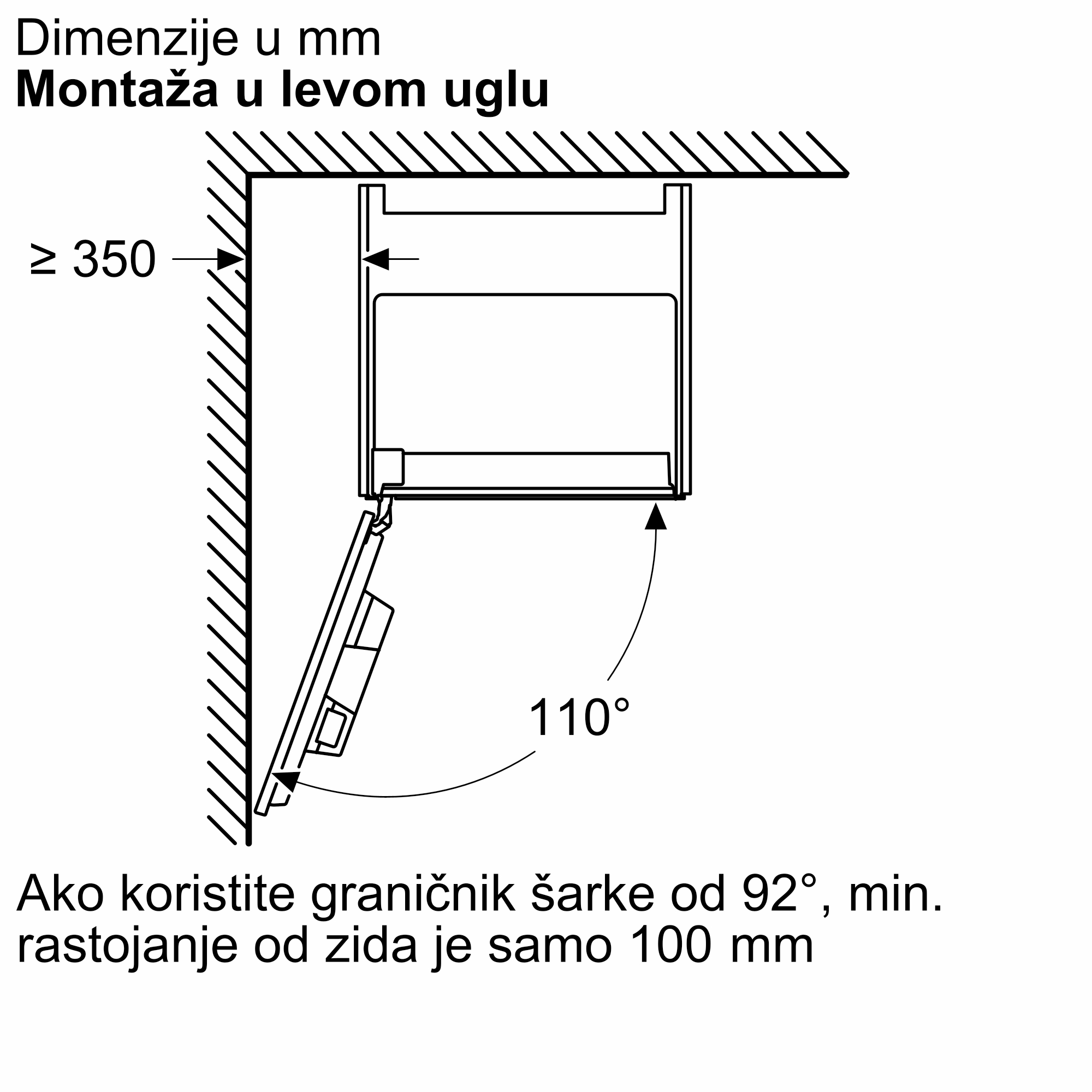 - Minimalna širina za montažu558