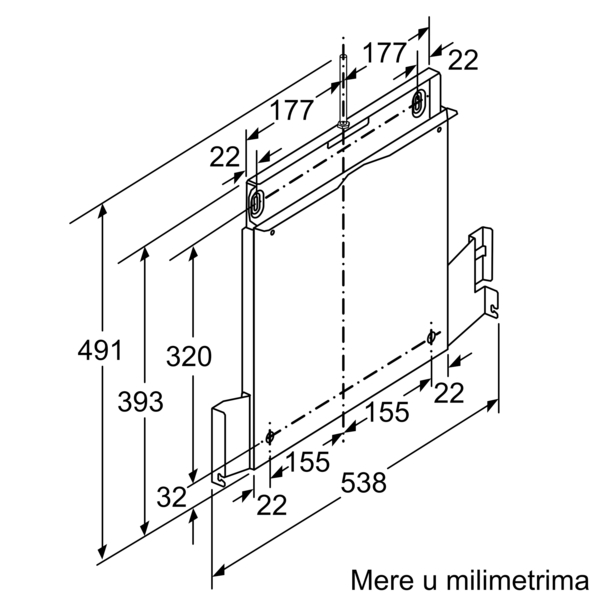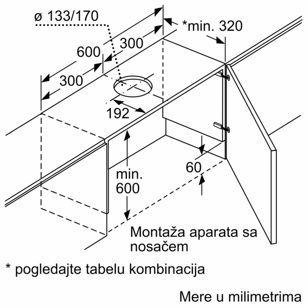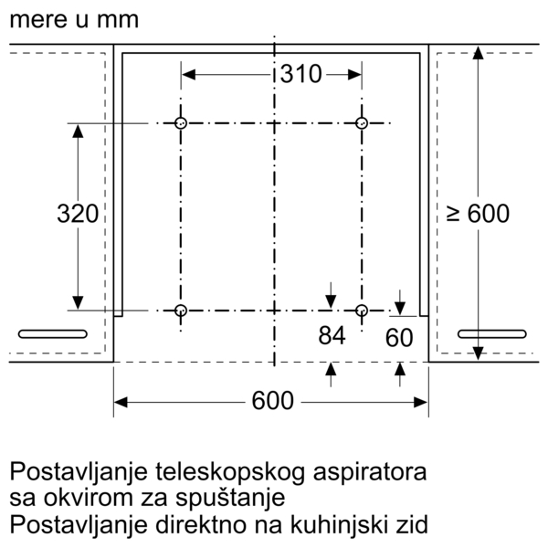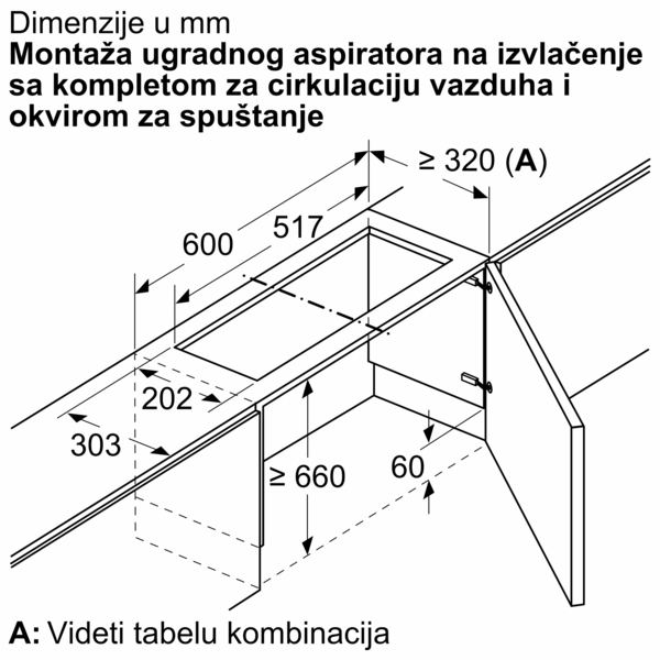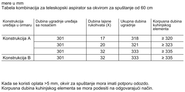 - Za ugradne aspiratore na izvlačenje, širine 60 cm