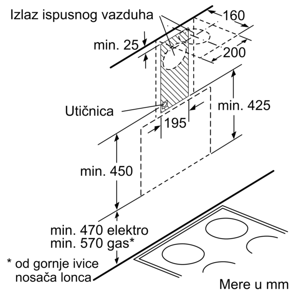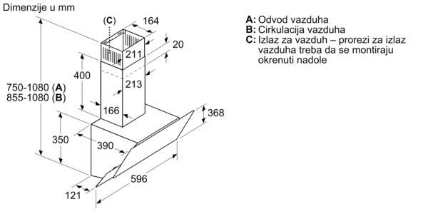 - : Sa izduvnim kanalom, vazduh se čisti preko filtera za masnoće, a zatim se odvodi u spoljašnju sredinu, što osigurava optimalan kvalitet vazduha u kuhinji.