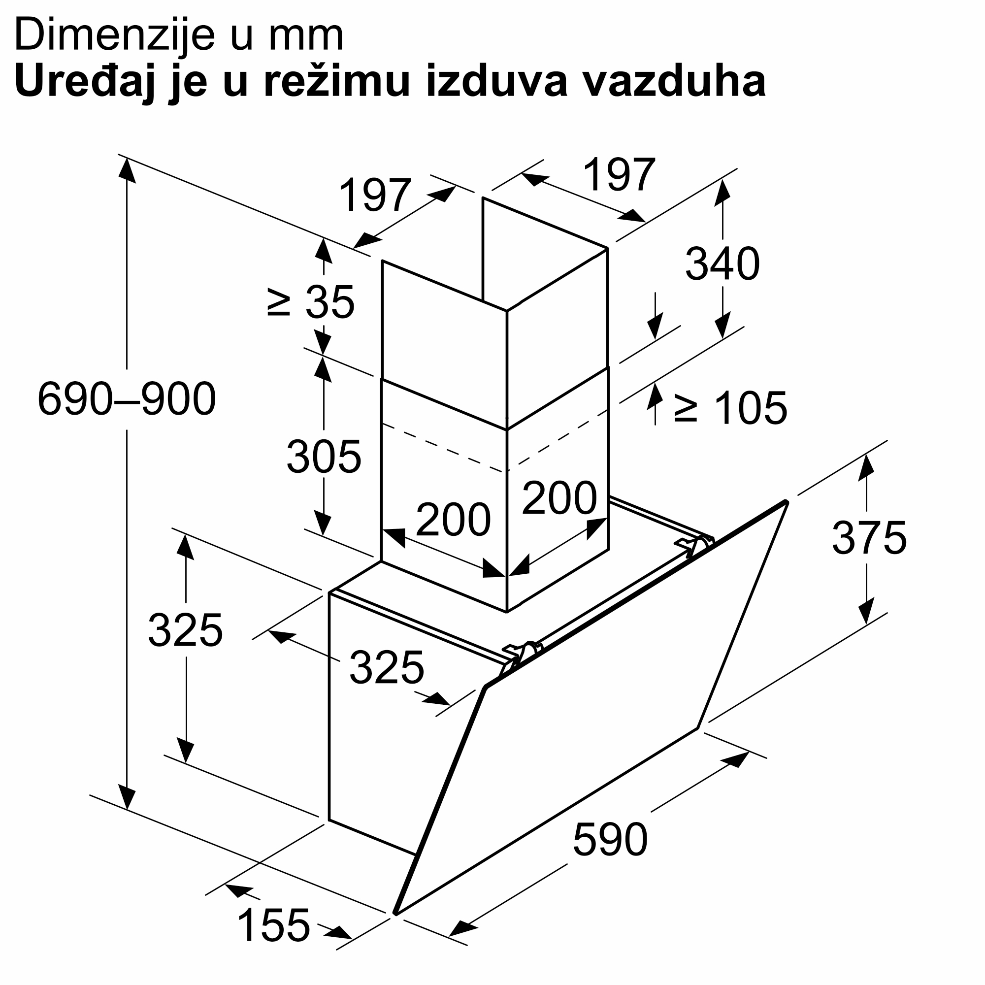 - Visina izduvnog vazduha uređaja min690