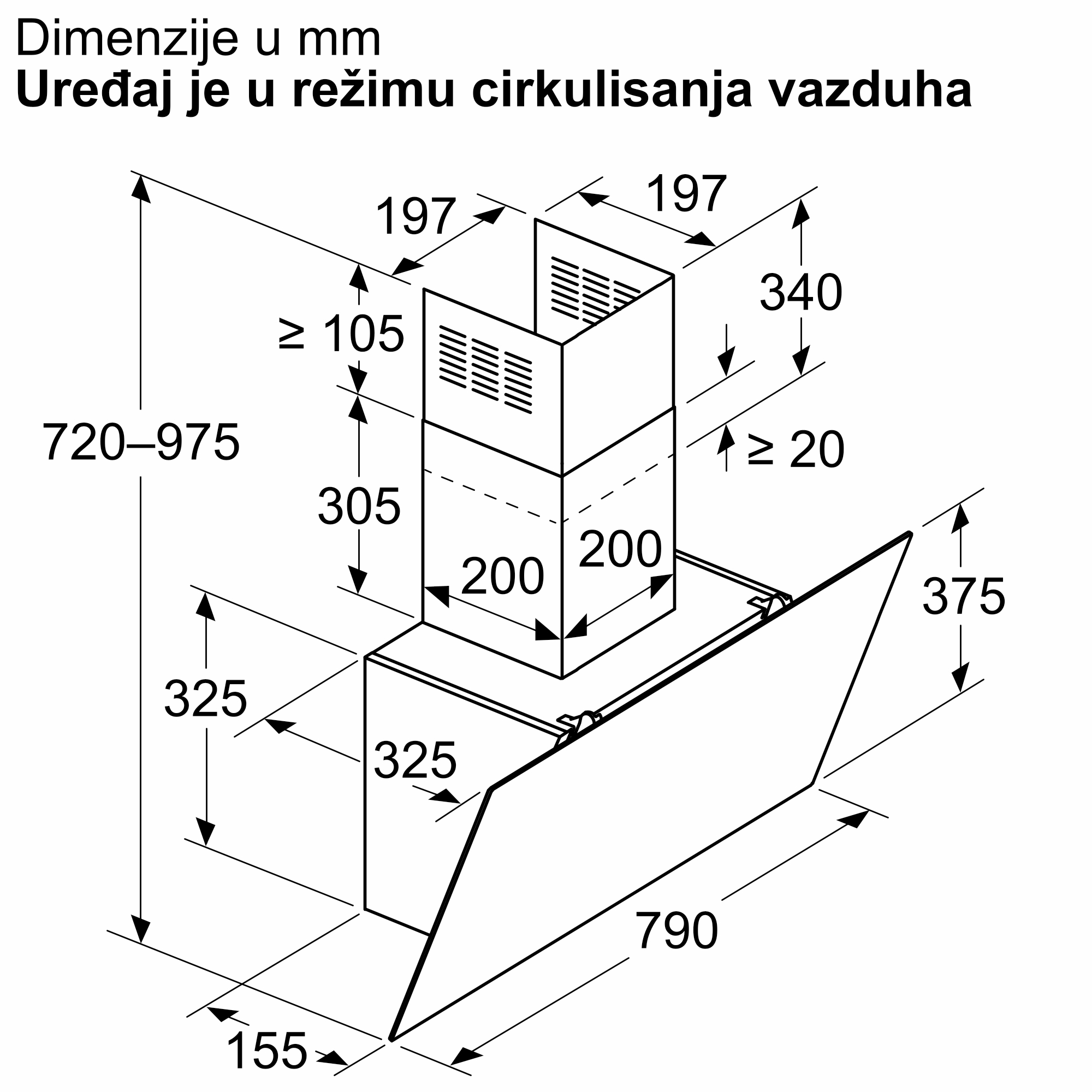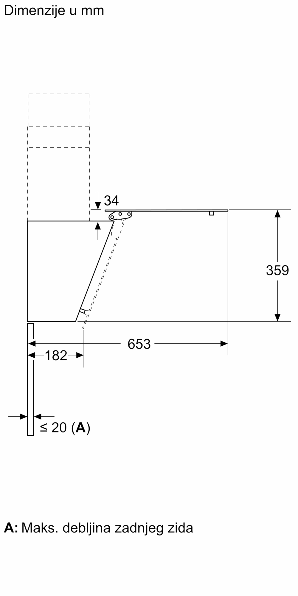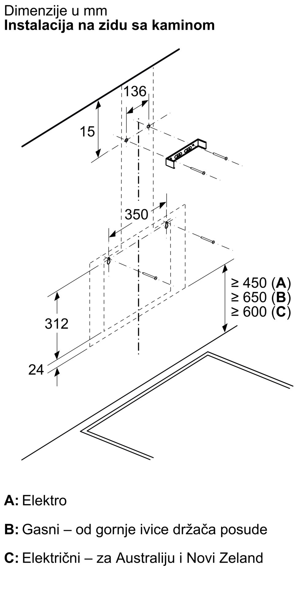 - Minimalno rastojanje iznad plinske ploče za kuvanje650