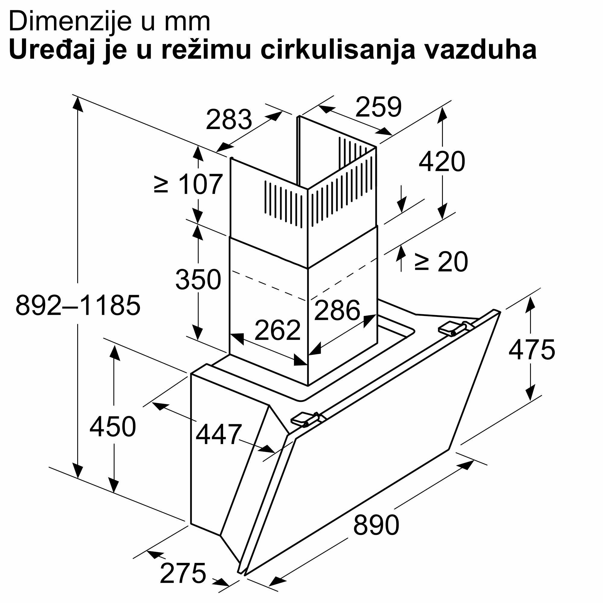 Najtiši nagnuti aspirator u Evropi, kada se ugradi u režimu recirkulacije.*