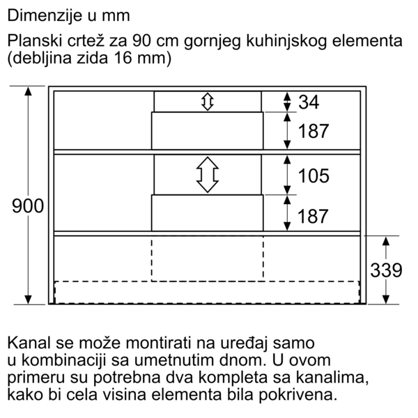 - Dvodelni set dimnjaka za pojedinačno podešavanje visine u ormaru.