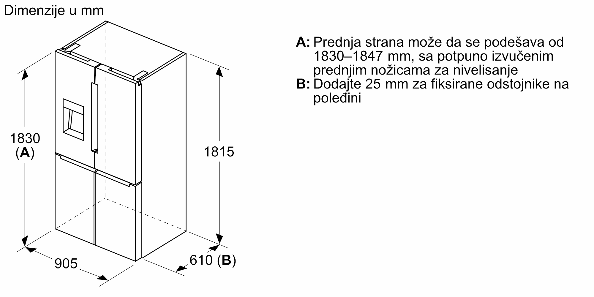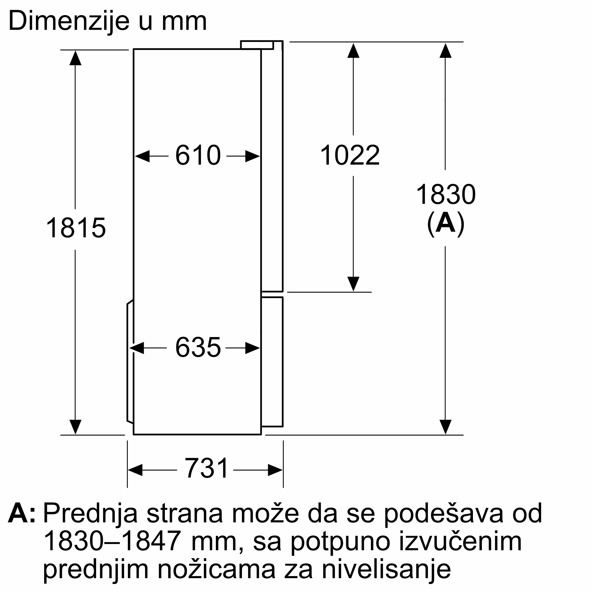 - Dimenzije aparata1830x905x731