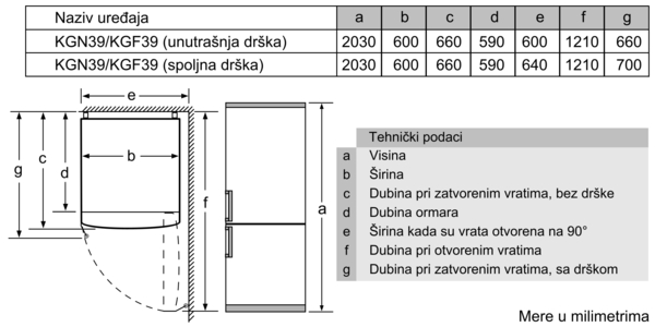 - Zbir zapremina odeljaka za zamrzavanje89 l