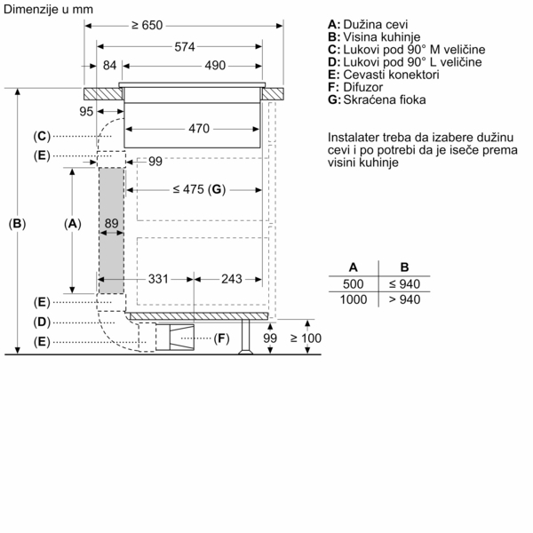 - Max. protok vazduha - odvođenje vazduha500 m³/h