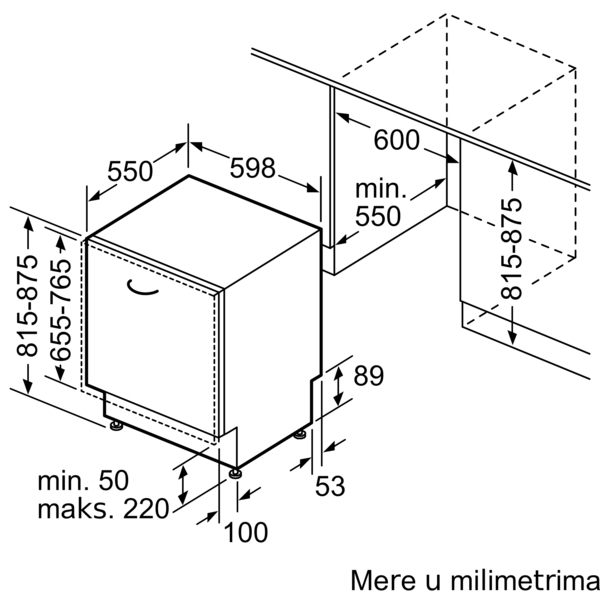Mašine za pranje sudova sa tehnologijom PerfectDry sa zonom za intenzivno čišćenje u gornjoj korpi čak i za kuhinje sa niskim podnožjem i visokim elementima u kojima se vrši ugradnja.