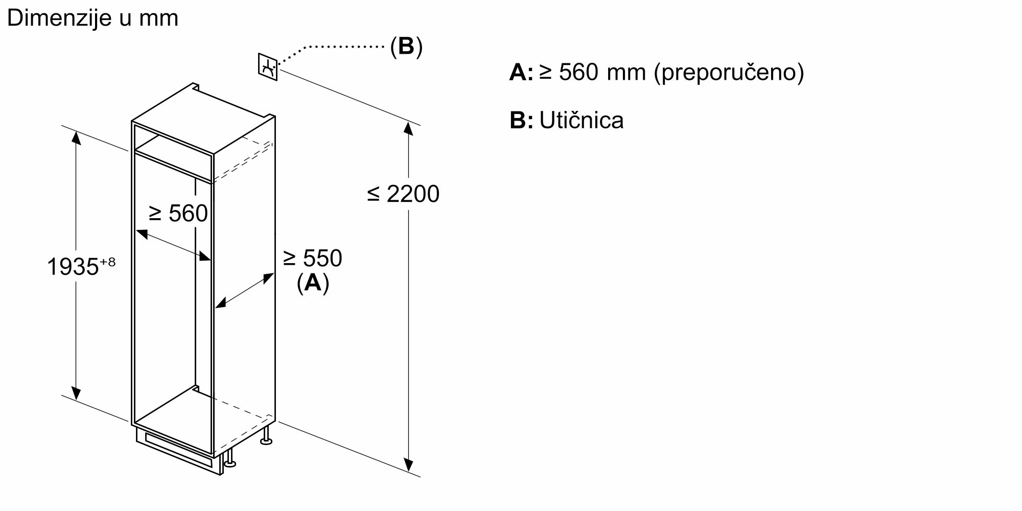 Veliki ugrađeni frižider sa zamrzivačem, sa 11% većim rashladnim volumenom, uključujući VitaFresh XXL <0°C> sistem, No Frost i signal upozorenja o grešci za optimalno čuvanje.